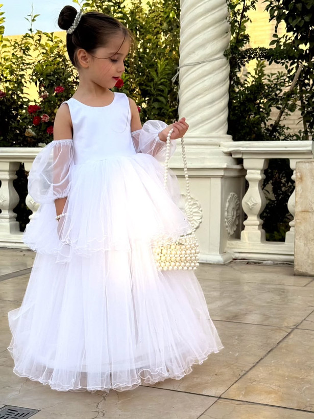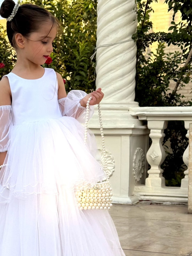 استایلی که هر دختری عاشقش میشه. کیف مرواریدبافی کارِ دست، سبک، خوشفرم و کاملاً مقاوم. مناسب مهمونی، تولد و ستهای سفید و مجلسی. قابل بعنوان ست مادر و کودک.