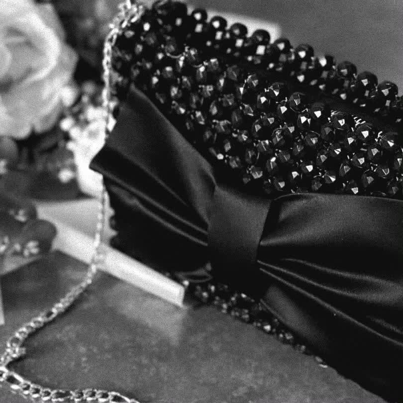 کیف مشکی 🖤 به همراه پاپیون ساتن مشکی طرح خاص و زیبا برای مهمونی و مجالس شما سایز دلخواه سفارش در پیام رسان های گفته شده