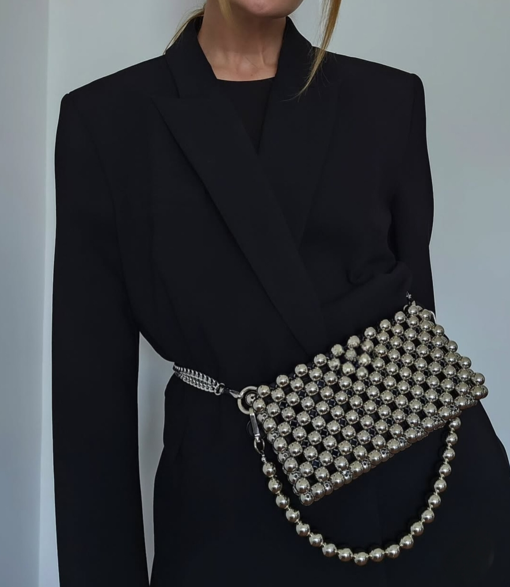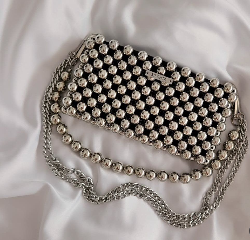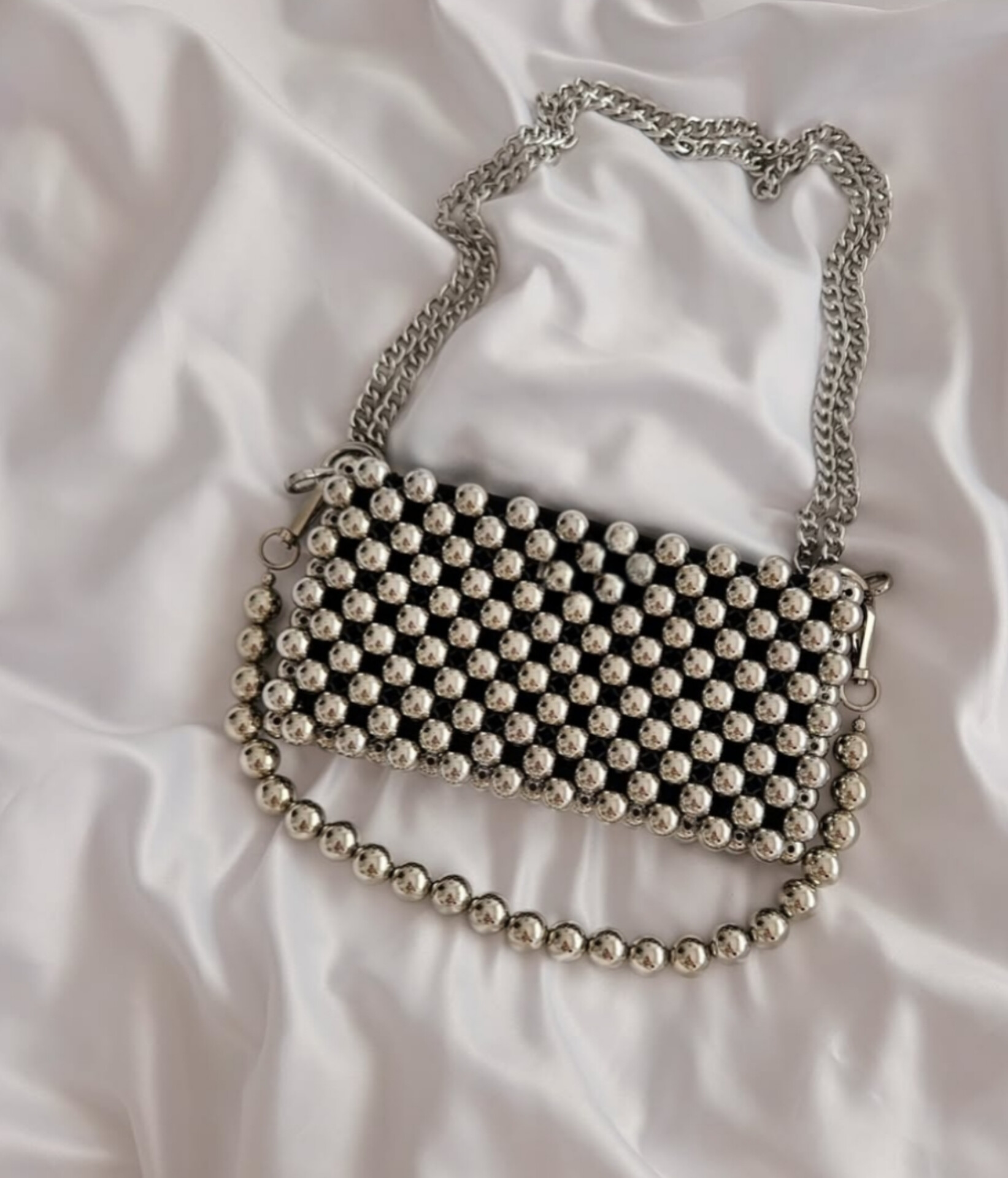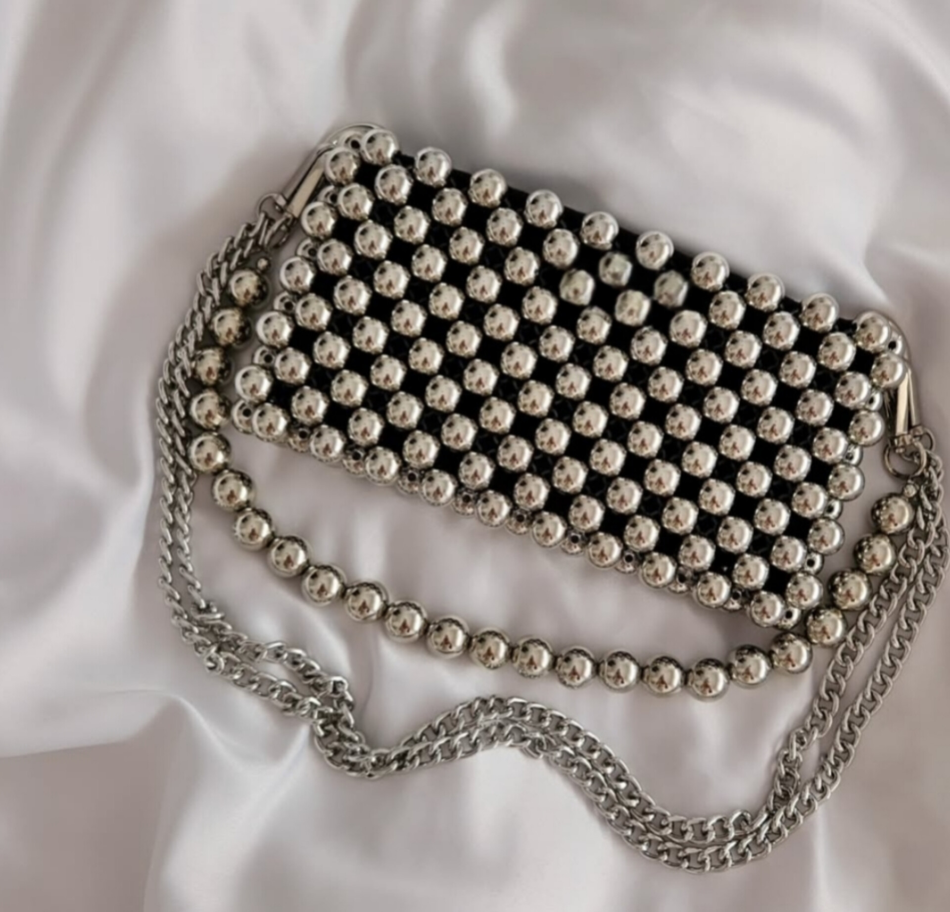ترکیب مروارید سیلور به همراه بند کوتاه و و زنجیر بلند